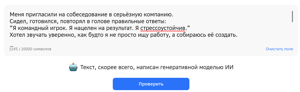 “Я командный игрок. Я нацелен на результат. Я стрессоустойчив.”