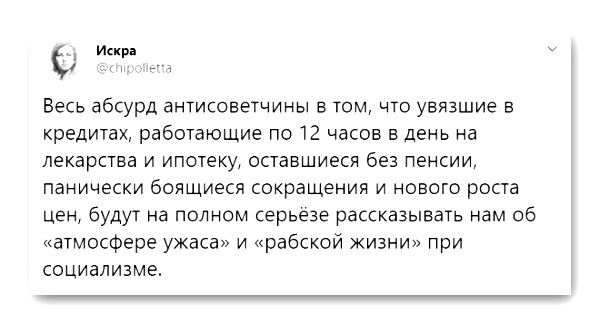 Социализм не отменяет рынок и не говорит о том, что все надо покупать только в гос магазинах. Кроме того любая система и в любое время может иметь баги (косяки). И к ним надо быть готовым. Сейчас это высокая ключевая ставка, инфляция. Если только ныть, то ничего хорошего не получится. Будет как в поговорке - у верблюда два горба, потому что жизнь борьба. У меня таких нытиков полкурса, причем все они на момент обучения в институте занимали более высокие ступеньки социальной лестницы чем я. И уже много лет они бесятся, что по сравнению со мной они нищеброды. Когда же я им предлагаю не ныть, а начать работать на свое благосостояние, причем предлагаю реальную помощь, то они орут что я агент Кремля. Некоторые искренне считают, что я старый друг Путина. И продолжают ныть. А вот работать никто не хочет