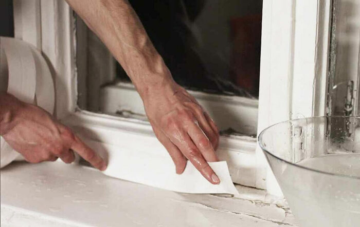 окна надо было заклеивать, или покупать специальную бумагу для заклейки или нарезать на полоски спизженную с работы.