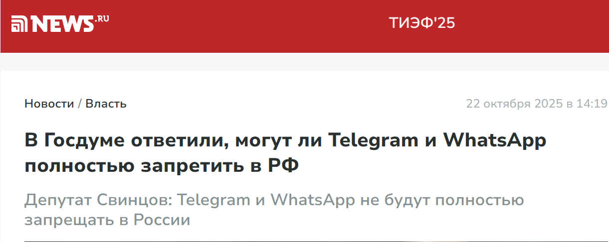 Телеграмм по функционалу намного более крутой, чем WhatsApp. Ну и работает Телеграмм корректнее. Это если рассматривать именно функционал и работу приложений и делать выбор. Что не мешает периодически пытаться блокировать Телегу в разных странах. И речь не только о РФ, а о Тайланде, Испании, Франции, Норвегии, Иране. Про попытки французских и румынских "товарищей майоров" наладить цензуру в Телеге Дуров писал неоднократно. Ну а слитые недавно переговоры в WhatsApp Уиткофа и Дмитриева показывают, что "товарищи майоры" не дремлют и в США. Так что автор, скажем мягко, немного лукавит. Речь просто идет о том," товарищ майор" из какой страны будет слушать и читать ваши переговоры и переписки? Тут пожалуй пока лишь Телега вне подозрений. А что касается сравнения Мазды с грантой, так автор видимо тоже не в курсе, что моделей у Мазды до хрена. Есть и уровня гранты. Я лично поюзал Max совсем недолго, работает нормально. До Телеги ему далеко, но как мессенджер для звонков и переписки вполне потянет